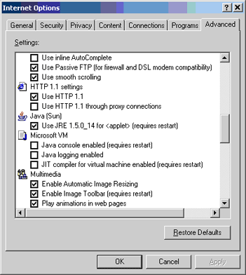 Change your browser in advanced options (Tools --> Internet Options --> Advanced --> Java (Sun))